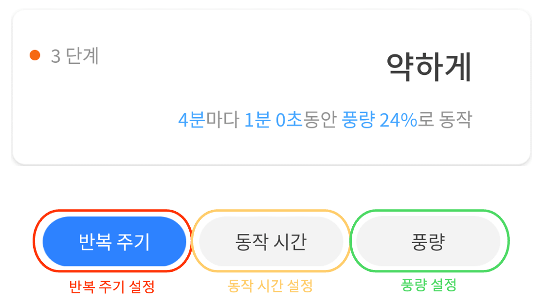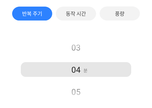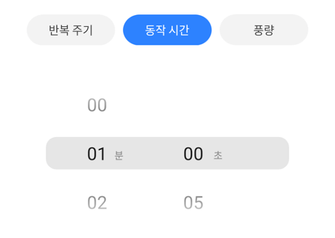 반복 주기, 동작 시간, 풍량을 설정해 미로 스마트 디퓨저의 발향 정도를 세밀하게 조절할 수 있습니다.